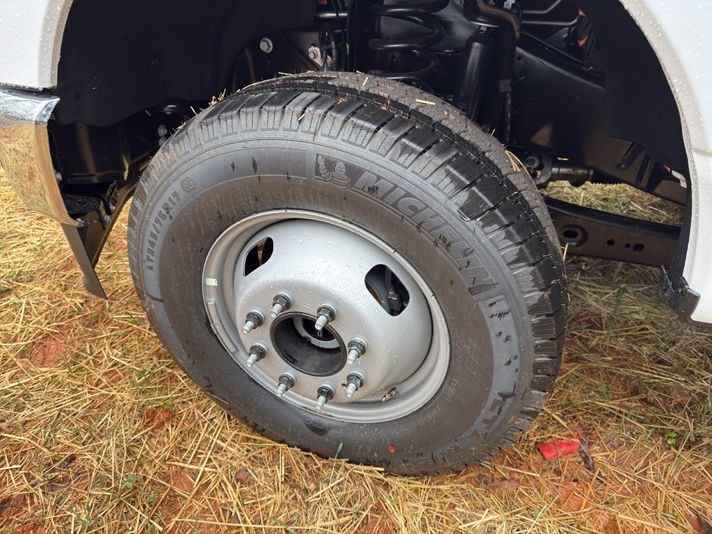 - 17 x 6.5-inch front and dual rear argent steel wheels