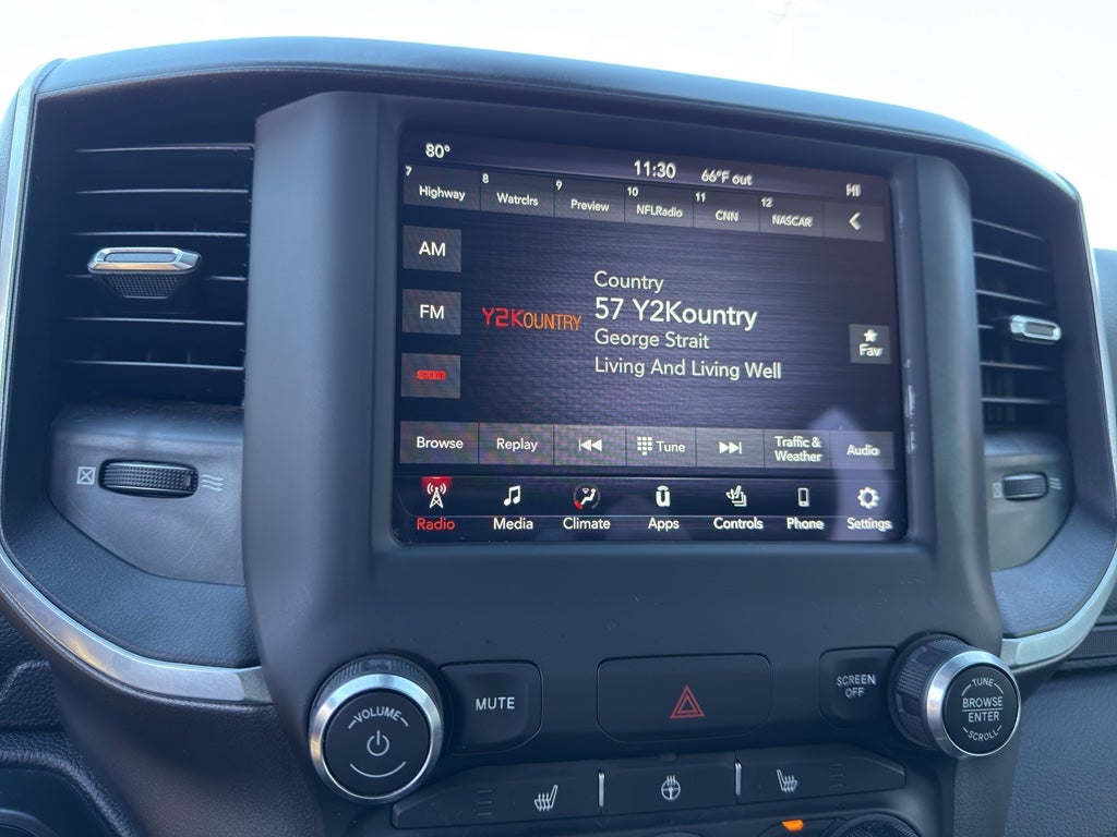The vehicle is equipped with the latest generation of XM/Sirius Radio. Apple CarPlay: Seamless smartphone integration for the Ram 1500 - stay connected and entertained on the go! Keep your hands warm all winter with a heated steering wheel in this unit . The state of the art park assist system will guide you easily into any spot. This 1/2 ton pickup comes equipped with Android Auto for seamless smartphone integration on the road. Never get into a cold vehicle again with the remote start feature on this model. Protect it from unwanted accidents with a cutting edge backup camera system. This vehicle has satellite radio capabilities. This 1/2 ton pickup keeps you comfortable with Auto Climate. This 2021 Ram 1500 has a clean CARFAX vehicle history report. Bluetooth® technology is built into this 1/2 ton pickup, keeping your hands on the steering wheel and your focus on the road.