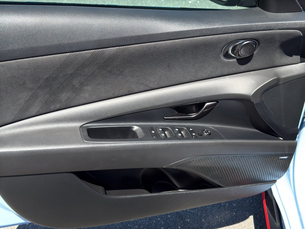 The Hyundai Elantra N features a high end BOSE stereo system. The vehicle offers Automatic Climate Control for personalized comfort. The state of the art park assist system will guide you easily into any spot. See what's behind you with the back up camera on it. Apple CarPlay: Seamless smartphone integration for it - stay connected and entertained on the go! The leather seats in the Hyundai Elantra N are a must for buyers looking for comfort, durability, and style. Bluetooth® technology is built into this model, keeping your hands on the steering wheel and your focus on the road. Never get into a cold vehicle again with the remote start feature on this Hyundai Elantra N. The installed navigation system will keep you on the right path. This vehicle offers Android Auto for seamless smartphone integration. This model shines with an exquisite blue finish. Quickly unlock this Hyundai Elantra N with keyless entry.