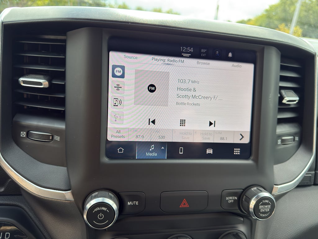 - Call 800-643-2112; Leather Wrapped Steering Wheel; Rear Dome with On/off Switch Lamp; Front Fog Lamps; Integrated Voice Command with Bluetooth®; Connectivity - US/Canada; Premium Cloth 40/20/40 Bench Seat; Glove Box Lamp; Auto Power-Folding Mirrors; Footwell Courtesy Lamp; 4G LTE Wi-Fi Hot Spot; GPS Antenna Input; Exterior Mirrors with Heating Element; Global Telematics Box Module; Mirror Running Lights; Uconnect 5 W Radio with 8.4" Display; 8.4" Touchscreen Display; Foam Bottle Insert (door Trim Panel); Black Exterior Mirrors; 18" X 8.0" Polished Aluminum Wheels; Apple CarPlay; Big Horn Instrument Panel Badge; Power Adjustable Convex Aux Mirrors; Forward and Reverse Utility Lights; Locking Lower Glove Box; Selectable Tire Fill Alert; SiriusXM Satellite Radio; Power Heated Fold Telescope Mirrors; Exterior Mirrors with Supplemental Signals; Steering Wheel Mounted Audio Controls; Exterior Mirrors Courtesy Lamps; Dual Glove Boxes; Center Hub; Power Adjust Mirrors; 2nd Row in Floor Storage Bins; Power Telescoping Mirrors